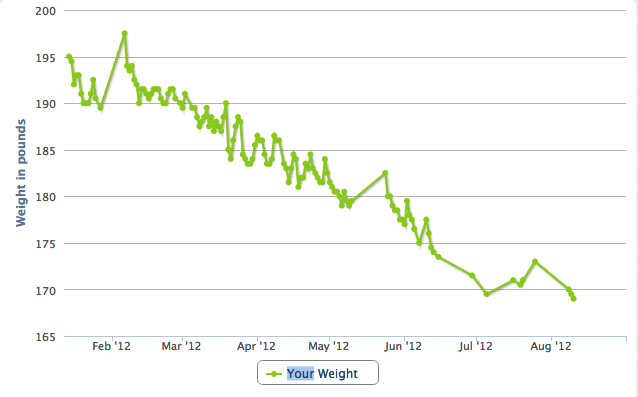 2. Get down to 165 lbs. – As of this writing, I am weighing in at a solid 169.0 lbs. While not the 165lbs of my goal weight, 4 lbs away is a pretty successful attempt at getting there. I was weighing upwards of 197lbs back in January of 2012, so a 32lb weight loss in 7 months is nothing to sneeze at. So, I just saved 4 lbs to feed off of during the 6 hours I will be racing on September 9th.  One other positive improvement has come along with this weight loss : a extremely healthy diet. I have now transitioned to a primarily plant-based diet in the last 2.5 months and am feeling the benefits of it. Despite the loss of weight I feel really good overall, my performance is increasing and (knock on wood) no injuries.