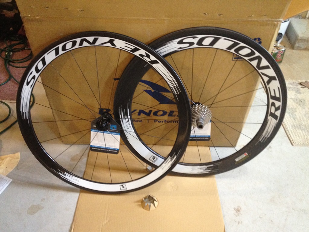 I had been looking at buying some old Zipp 404 Carbon Clinchers over at Race Wheel Rental for around $1300. This is about half the cost of new ones, but these are older wheels and have some miles into them so that is a little risky. Last month I stumbled onto a sale on Reynolds carbon wheels over at Performance Bike. I did some searching around on reviews and everything I could find was positive. I settled on a Assault/Strike combo, which is a 46mm deep wheel in the front and a 66mm rim depth in the rear. They were on sale for $999(now $1099) and usually listed for almost double that, so I jumped on it. New wheels for less than the cost of new ones…nice! Yeah they are not Zipps, but hey I am not Pete Jacobs either. I think any little bit will help. 2013-03-16 12.15.15