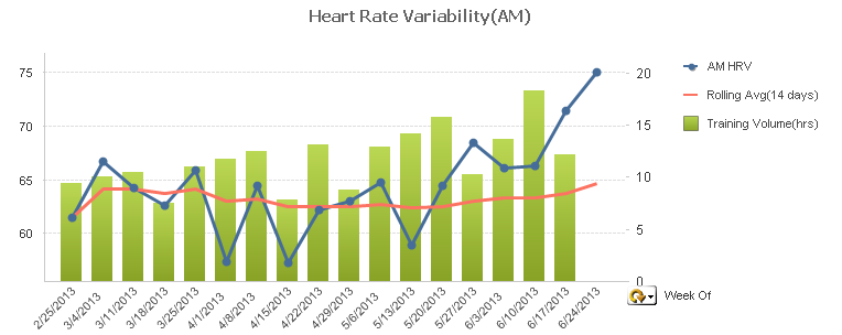 Looking at the biofeedback data, it appears that everything is responding to the increased training load quite well. My HRV continues to increase. Granted it was a recovery week.