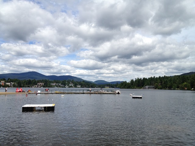 Next, we headed down to Mirror Lake beach and I headed out for a 20 minute swim in the lake. The Kid’s race was going on while I did that so there was a big crowd on Mirror Lake Driver watching that. Denise sat on the beach and read while I swam. The swim felt good and the water seemed to be the perfect temperature even with my wetsuit on. I cruised out 10 minutes, turned around and headed back to the beach in a little under 10 minutes. The swim felt effortless and it really restored my confidence for Sunday. I changed out of my wetsuit on the beach and then we headed back to the car in town. Finally time to head back to River Rd and get away from all the triathlon-ville banter.