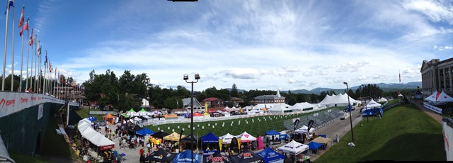 After a good nights sleep, we had a good breakfast and headed into town to the athlete check-in for the race. The Athlete check-in was held in the new Lake Placid Conference Center at the Olympic Ice Rink complex. It was a pretty smooth operation and I walked right up the steps and was greeted by a volunteer who looked up my information and wrote my bib number(#234) on a yellow card. The funny thing was the volunteer actually new where Alburtis, PA. Turns out she was from Allentown and a member of the local Endurance Multisport triathlon club. She mentioned that she rides through our town frequently which is not too surprising since we are in the hub of some of the best cycling in PA. She then directed me back to the next station and wished me good luck.![]()