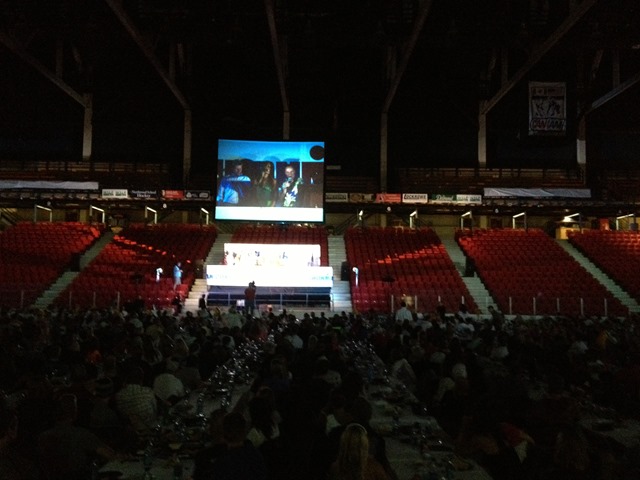 Next, we headed to the Herb Brooks Ice Arena for the “Mandatory” Athlete Meeting. They had an athlete dinner beforehand which overran its time so we got to hear some of the leftover speeches from that. One of interest was the 5 members of the same family that were all competing in the race together. Pretty cool stuff. Each one of them dedicated the race to different people that have suffered recently. The other thing that was cool was that when I looked up at the scoreboard in the arena it had the final score of the US vs. USSR “Miracle on Ice” olympic hockey game posted…4-3. The athlete meeting was the same old stuff really. The only thing of note was that the weather could play a factor and they mentioned possibility that the swim could be shortened or cancelled due to lightning. Hope that doesn’t happen.