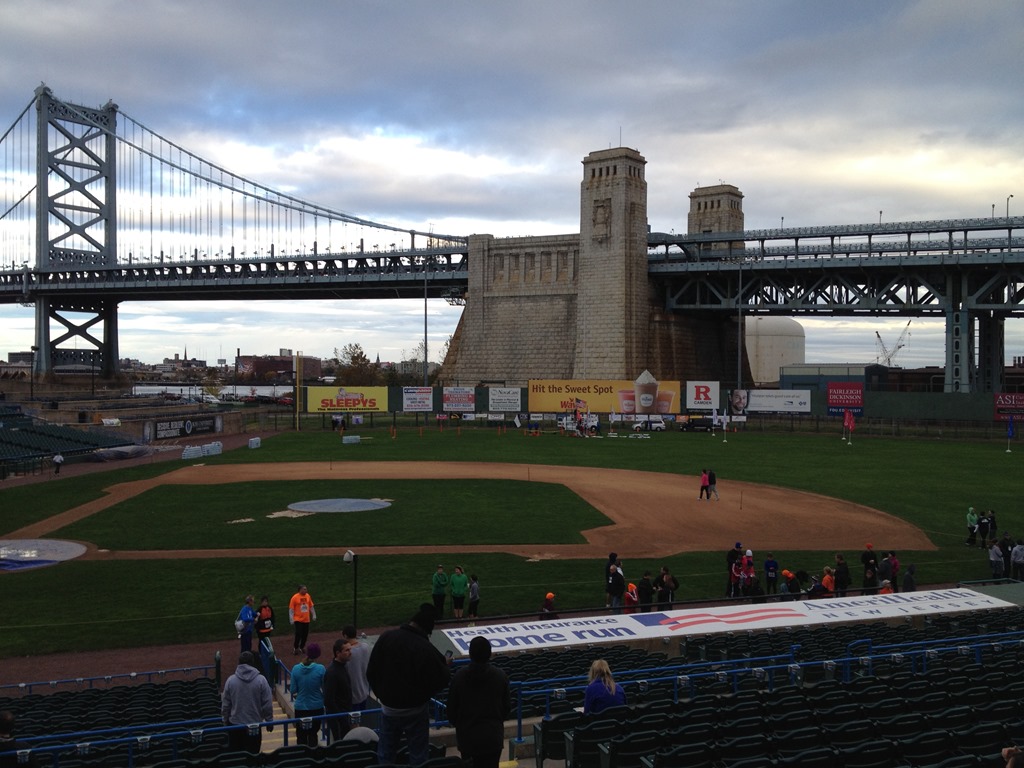 The course was pretty flat as it made its way through the streets of downtown Camden. It didn’t really seem that bad there, but that could be cause it was 9am in the morning too. We did hit a little incline as we ran through Wiggins’ Waterfront Park along the Camden waterfront , which I wasn’t expecting. It seemed much bigger than it probably was. The worst part of the race was when we were heading down Delaware Ave and Campbell’s field was firmly in view. I started thinking just hold it flat straight down this street and then we had to make a hard right up Market St. taking us farther out of the way. It played with my head a bit, but it was only around the block so before I knew it we were back on Delaware Ave again. Then down into the back of the baseball park to the finish line. I tried to scan the people lining the finishing chute looking for Denise, but I never saw her. Apparently, she was still walking. I had my phone strapped to my arm, so I texted her to let her know I finished.