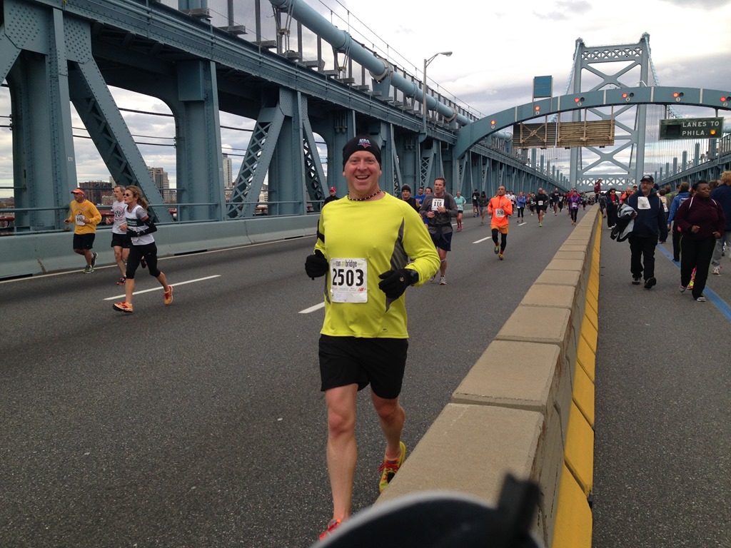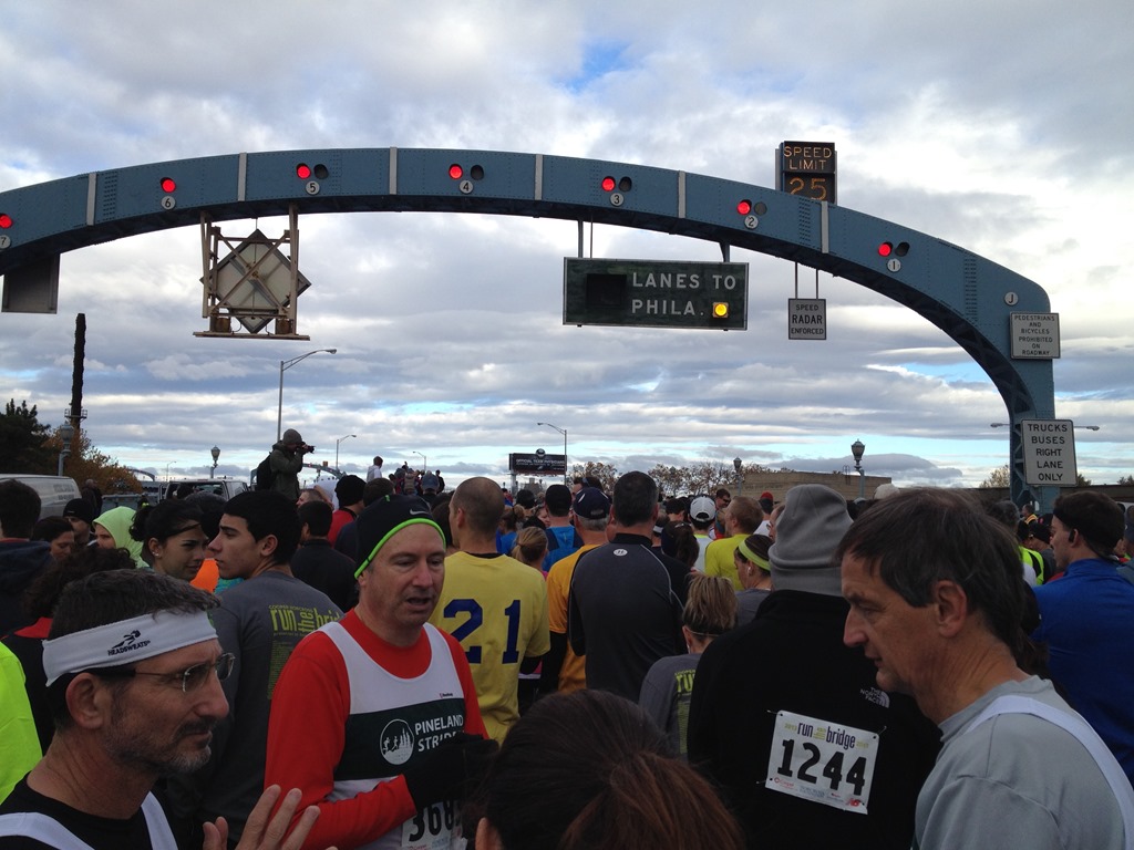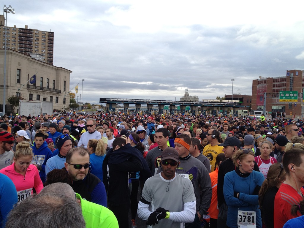 I really didn’t have too much confidence I would do so. I had not run very much in the two weeks after the Runner’s World Hat Trick so I wasn’t sure how my fitness would hold up. I also knew that running bridges can be pretty tough from my experience at Ironman 70.3 Miami. They are like a big hill with no protection from any winds that may be blowing. The event started at the NJ side toll booth and went across to the PA side, turned around and came back and then through streets of downtown Camden, NJ(Yikes!!).