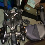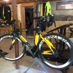 I also transitioned my bike over to my “race” setup for the upcoming Black Bear Half Iron triathlon on June 1st. I washed and lubed up the bike, changed my brake pads over to the SwissStops and put on my carbon race wheels. I also finally got around to putting on my XLab Torpedo Water Bottle Mount between my aerobars. I have had this mount for awhile now sitting in the bag, but was hesitant on putting it on since it didn’t fit real well between my bars. I did have to move my aerobars apart a bit because the length of my bars don’t give a whole lot of room for the bottle. I also could not find anywhere to mount the computer since there was no room on the Torpedo Mount plate and the headbolt they provided was not long enough to mount on my headset cap. I ended up putting the Barfly mount sticking to the outside on my right aerobar. I actually had to angle it down a bit so my arm didn’t keep hitting the lap button. Not an optimal setup, but it does keep me from staring at the Garmin all the time. ![]()