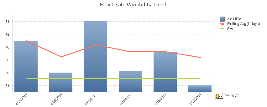Heart Rate Variability (HRV) has been on a bit of decline, but nothing unexpected from the increase in volume. I have been keeping an eye on it and adjusting workouts accordingly.