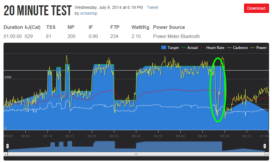 Wednesday was threatening rain so I ended up getting on the trainer again to attempt a final TrainerRoad 20min FTP test while also watching the Tour de France. The FTP test started out ok and I was feeling pretty good until about 2-3 minutes to go. I this sharp pain down the left side of my back. It felt a pulled muscle and I had a hard time taking a breath. It forced me to briefly stop pedaling until I worked it out. I eventually did and tried to re-coop my lost wattage, but it was too late. It ended up giving me an FTP of 223, which was well below my prior FTP of 234. 🙁 I know this is in correct, so I just manually changed it to 230 again. I am also about 7 lbs lighter than I was during the last test so my watts/kg went from 2.79 to 2.9.