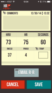 This HRV readings for HRV+ seem to run several points above what I get in the Sweetbeat app. I had run side-by-side comparisons for a week and this apps’ HRV value averaged about 10 points above, with the exception of my first reading being extremely higher than SB. I later compared the rMSSD(“root mean square of successive differences“) values of Sweetbeat and HRV+, which is more of a standarized measurement, and those were different as well, only not as much.
