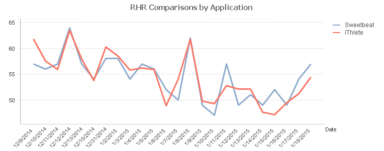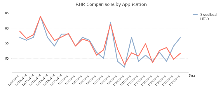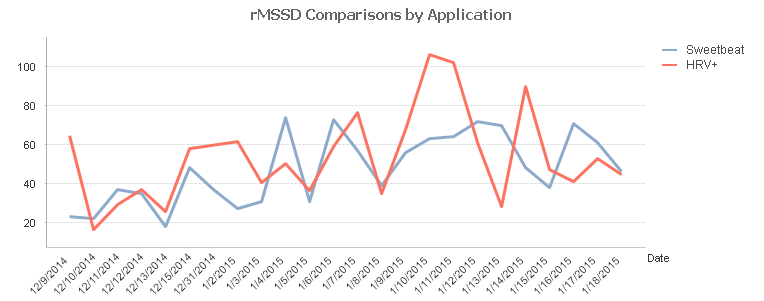 I believe any application that is measuring your personal health data should provide some mechanism for you to extract or export that raw data for your personal use. It is MY data, therefore I should be able to access it in raw format. I also like to take that data and join it up with other training or health data to look for patterns using something like QlikView or other data analysis tools. The Sweetbeat application provides no such functionality. You can only view your data within the confines of their iOS application or on their website, which provides nothing but a calendar showing color-coded entries for your readings. Nothing really useful. In fact, to gather the data for this comparison I had to scroll through the multitude of screens for each day to get the raw data and enter it manually in a spreadsheet. Why they cannot provide a link to download a CSV of your data is beyond me, but they don’t. The graphs in their application are so poorly laid out, that it is hard to get any information out of them, especially when you have a lot of readings. The graphs do not even change when in landscape mode to take advantage of the extra space. Fail