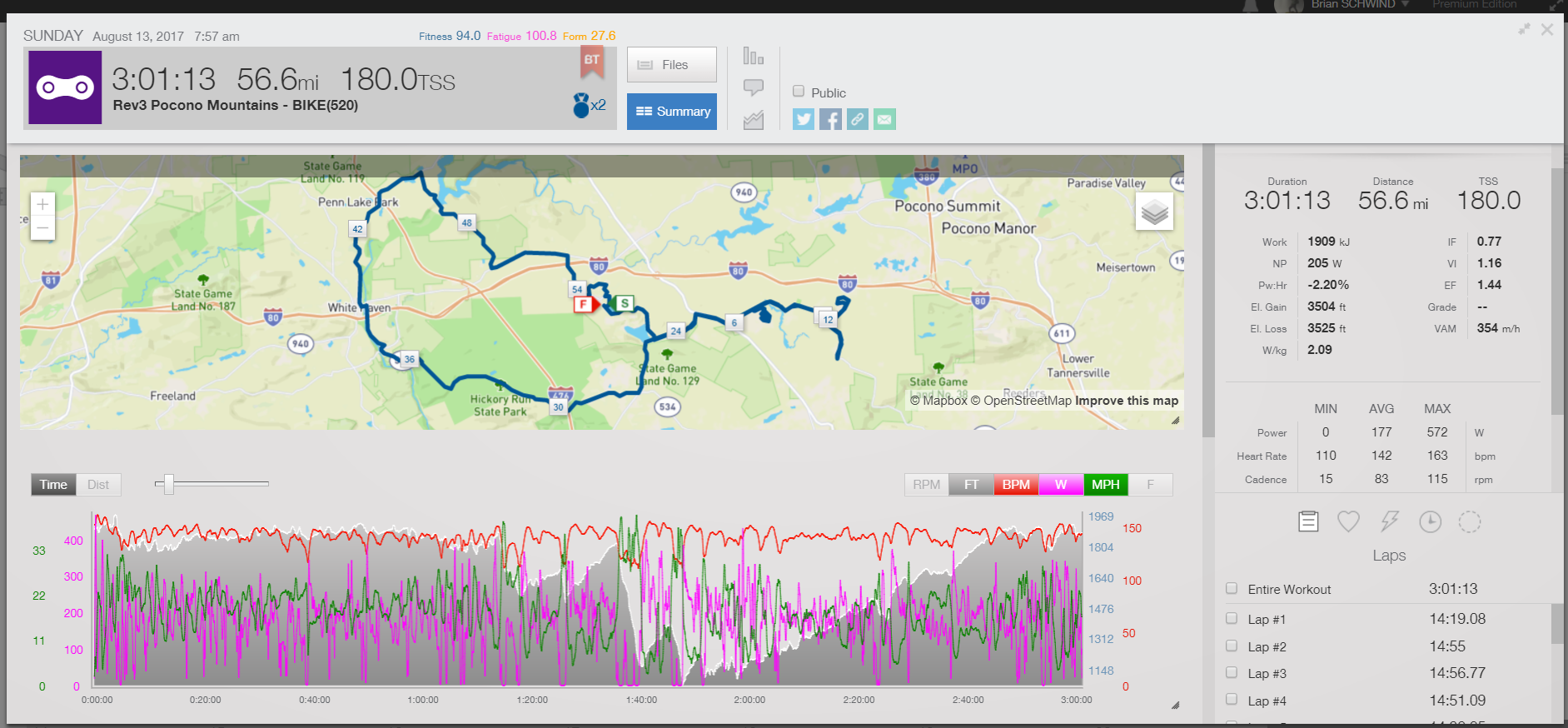 Bike: 03:01:43.010 (57.1 miles @18.85 mph)