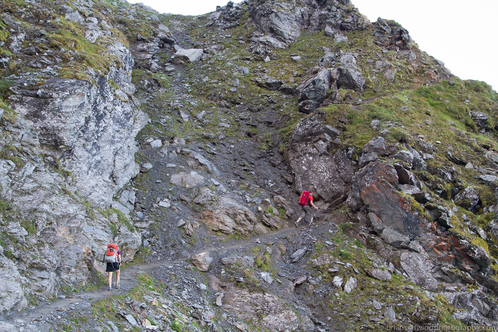 Denise following Rich up the steep switchback leading to the Col de Termin