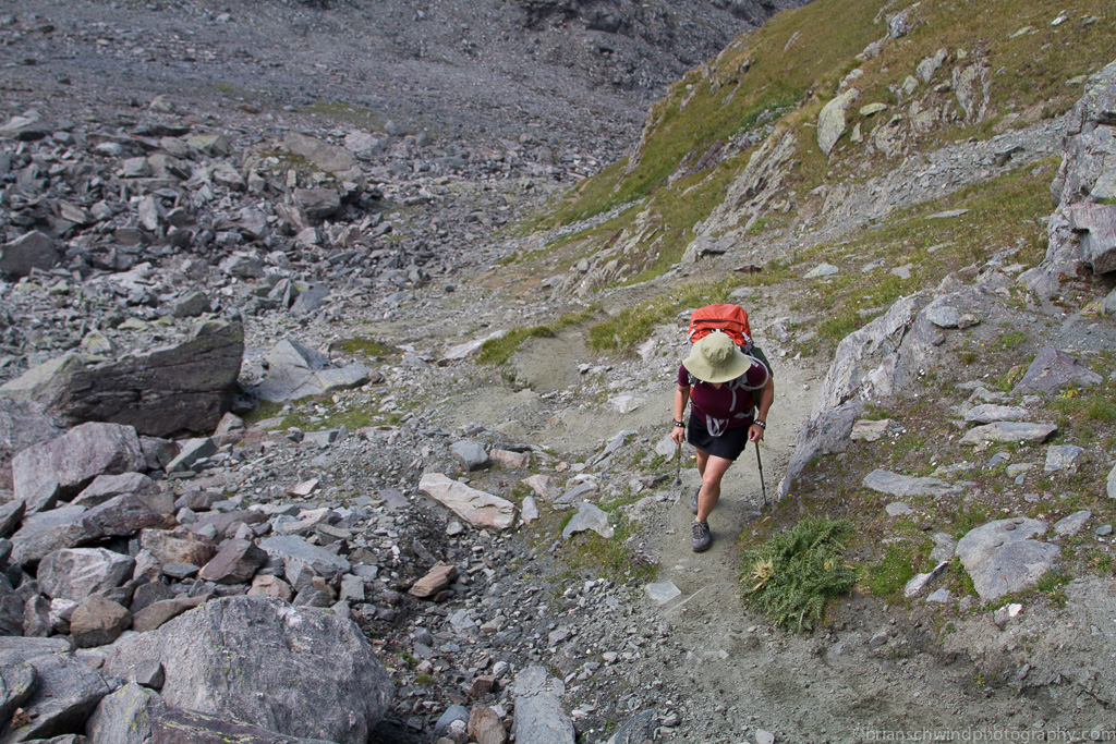 Denise switchbacking up the mountain