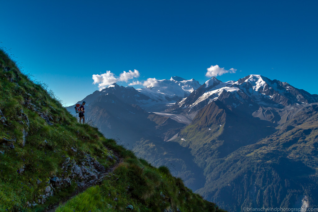 Denise views the Grand Combin and Glacier de Corbassiere