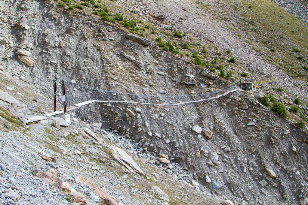 Suspension Bridge provides an Alternate Route across major rockslide that took out a large chunk of the mountainside.